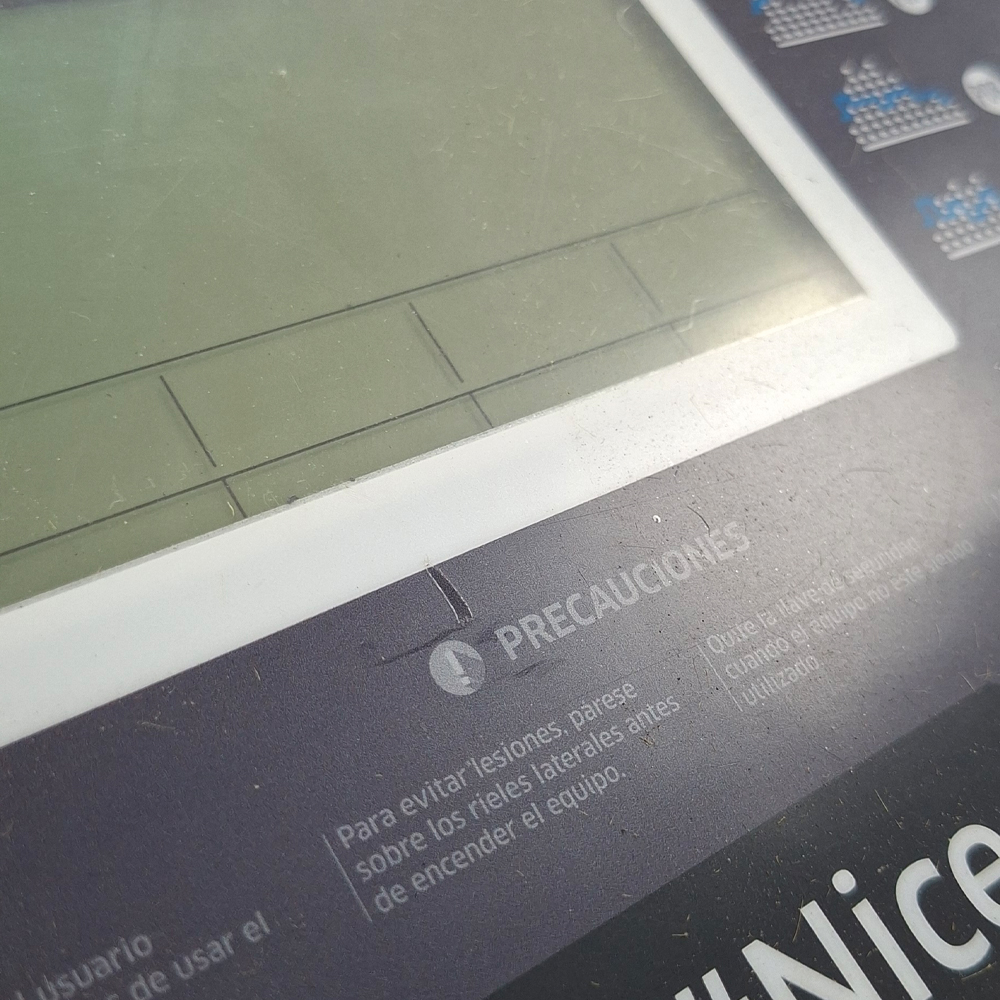 Cuadro y plásticos marcados. Display flojo producto de rotura en el plástico de agarre